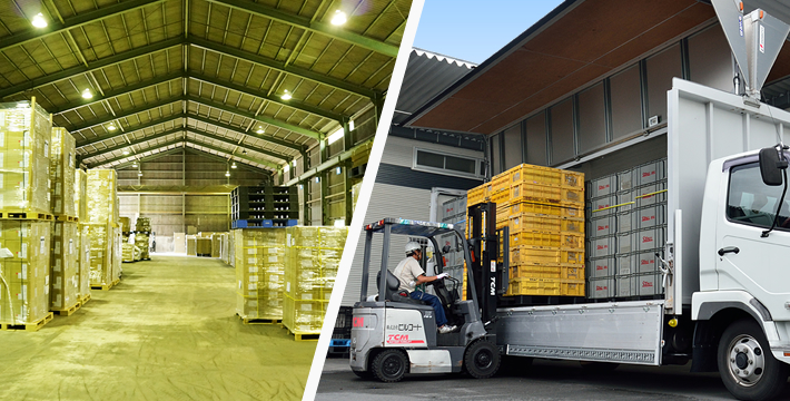 自社の倉庫施設で完成品を保管。お客様のニーズに合わせて、ダイレクトに出荷することが可能です。
